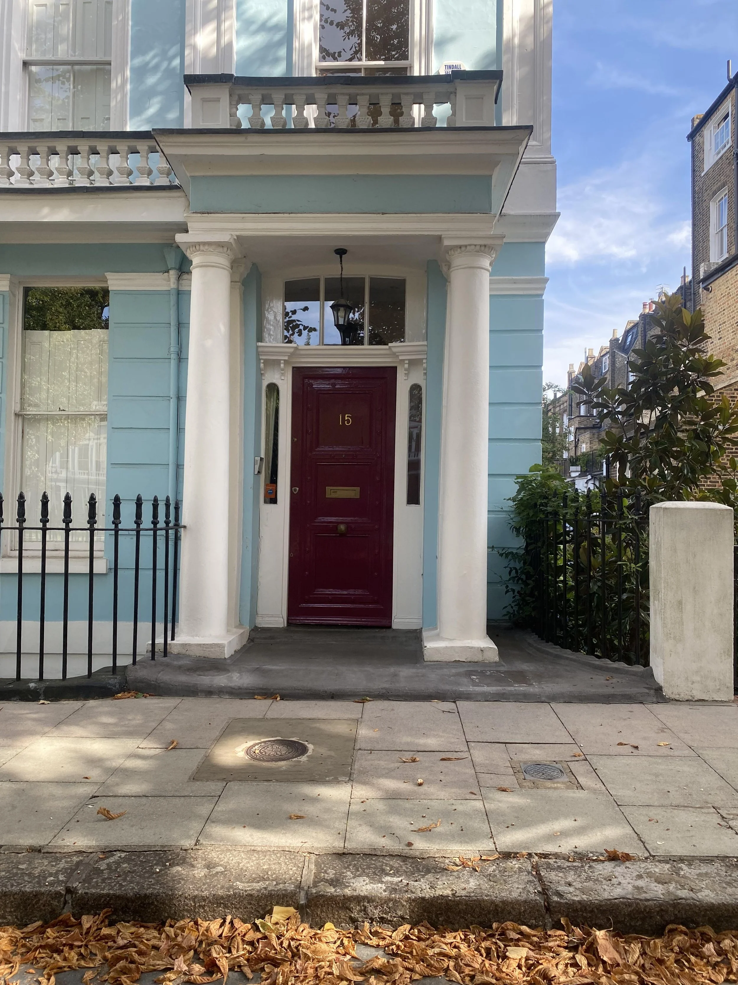 Our Primrose Hill Grade II listed house - note the stucco frontage, the groups of three decorative plaster moulded windows and the plaster balustrades and the continuous balcony at first floor level. All key characteristics of the mid Victorian era.