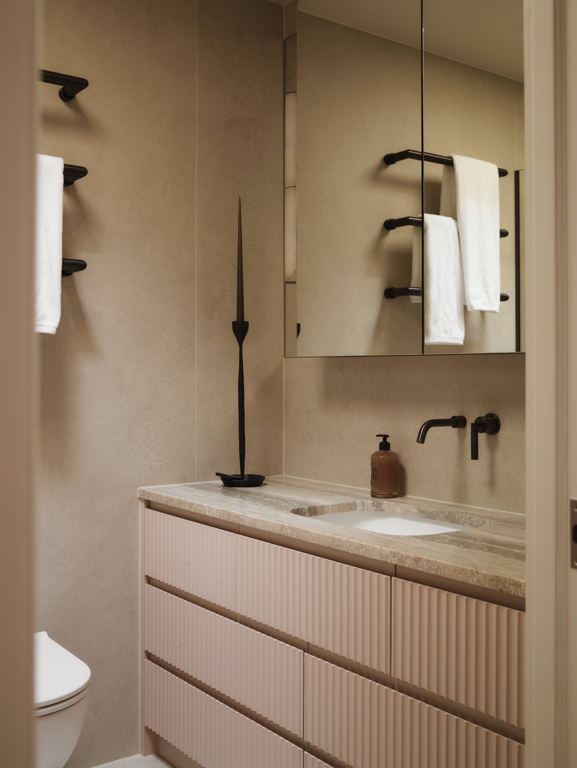 The Principal En-suite with natural travertine - a lovely sanctuary to get ready and retire to each day