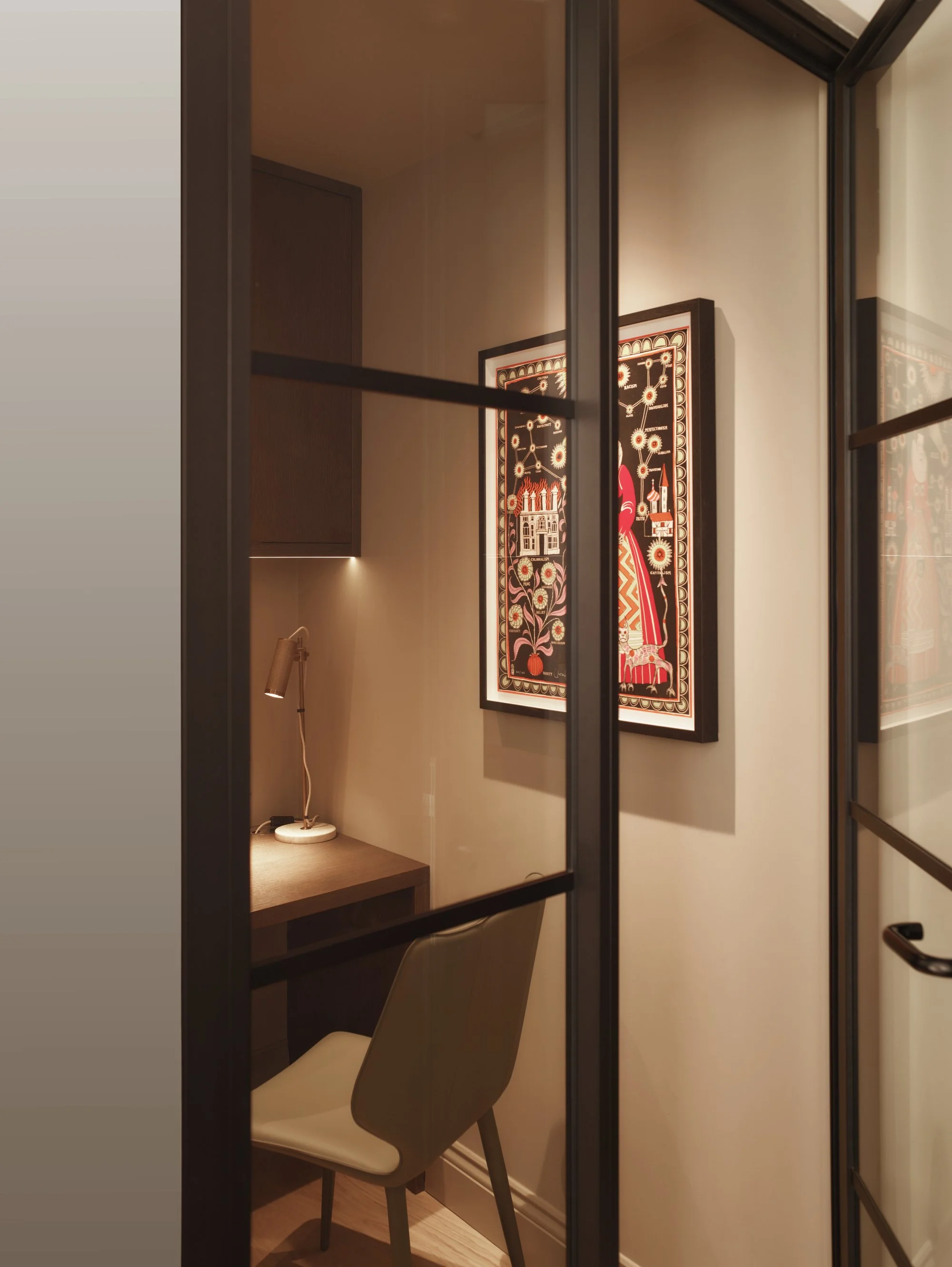 A small but perfectly formed home office set off the entrance corridor with crittall doors to allow for good natural light levels